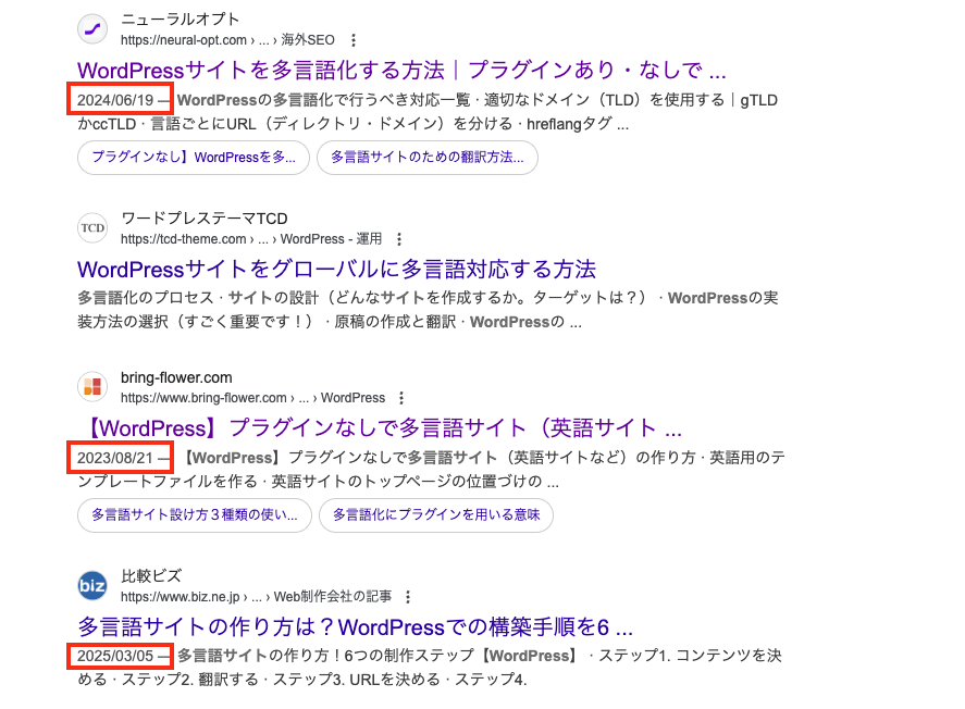 Google検索では、記事によって検索結果に日付が表示されることがあります。