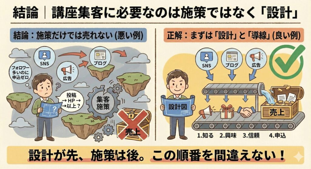 結論|講座集客に必要なのは施策ではなく「設計」