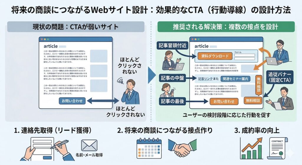 4. 読ませて終わりはNG。アクセスを商談に変える「導線設計」
