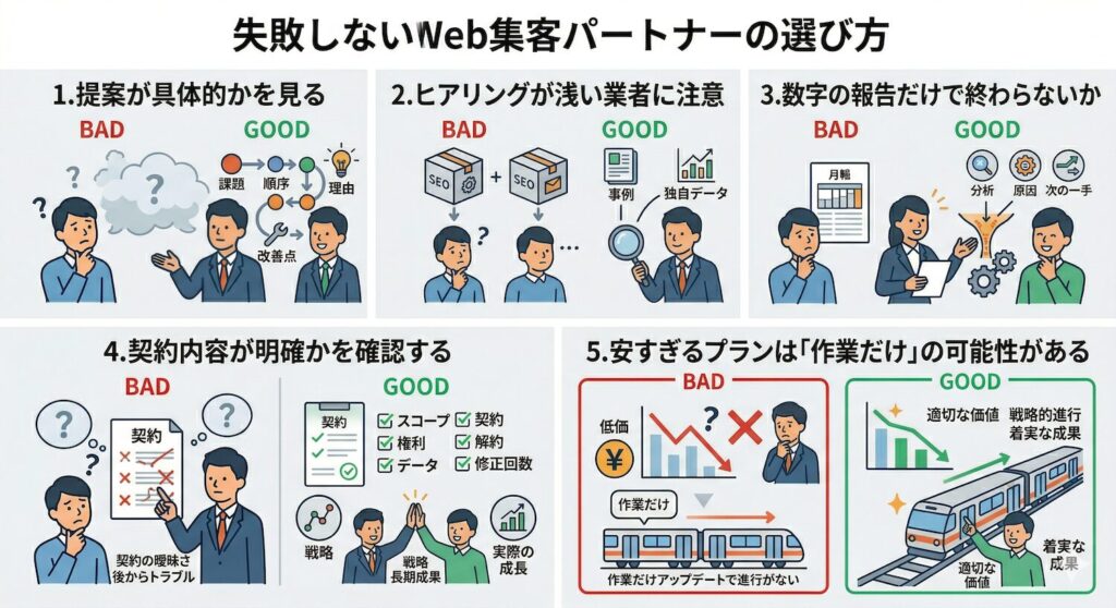 安さに惹かれて契約した結果、方向性の整理も改善提案もなく、ただ更新だけが続くのであれば、長期的には高くつきます。