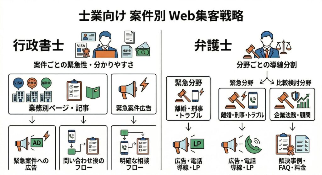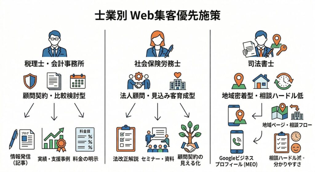 このように、士業のWeb集客は「どの資格か」だけで考えると浅くなります。