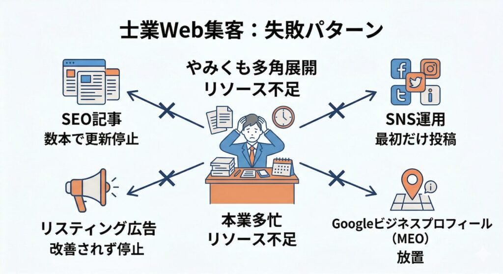 ここでは、士業がWeb集客で陥りやすい失敗パターンを整理しておきます。