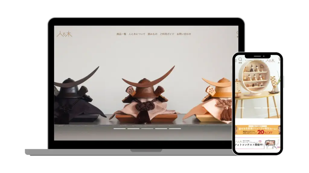 静岡の職人による手作りの雛人形や、国産材を使った家具を展開する「人と木」様。